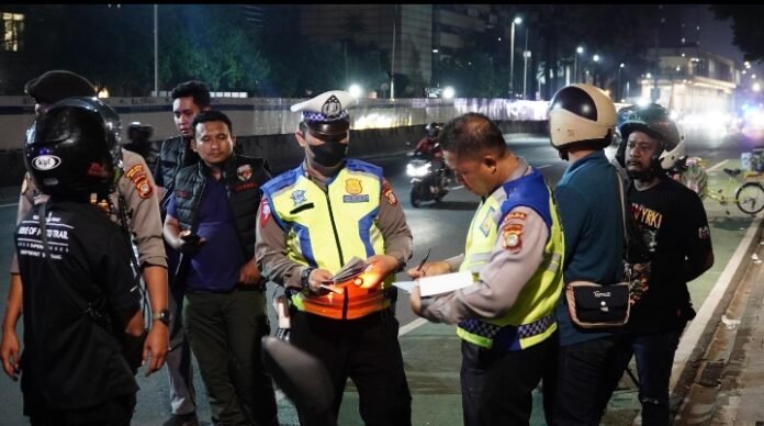 ACTUALNEWS.ID, Jakarta Pusat – Kapolsek Metro Menteng Kompol Bayu Marfianto bersama 63 personil gabungan gencarkan Patroli malam hingga dini hari untuk mengantisipasi balap liar dan tawuran antar remaja di sepanjang Jl. MH Thamrin Bundaran HI sampai Monas Jl. Merdeka Barat Jakarta Pusat. Minggu (13/10/2024).
