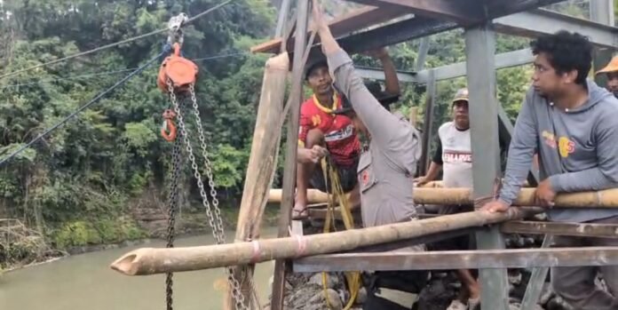 POLRI GERAK CEPAT RESPON PIDATO PRESIDEN PRABOWO, SATBRIMOBDA SULSEL BANGUN JEMBATAN GANTUNG DI SOPPENG