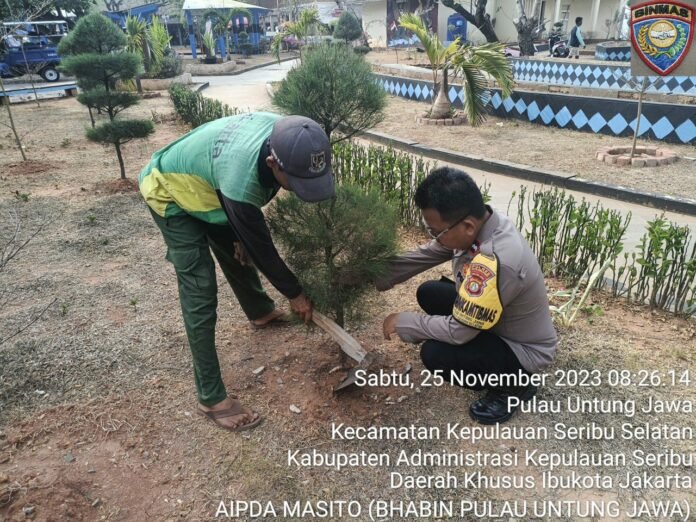 ACTUALNEWS.id Jakarta – Polsek Kepulauan Seribu Selatan, Polres Kepulauan Seribu, dalam sebuah upaya kolaboratif dengan warga setempat, telah melaksanakan penanaman ribuan bibit pohon di setiap pulau penduduk pada Sabtu (25/11/2023). Kegiatan ini dipimpin langsung oleh Kapolsek Kepulauan Seribu Selatan, AKP Rahmat Suryaman, yang menjelaskan bahwa penanaman bibit pohon merupakan langkah strategis untuk mengurangi tingkat polusi udara di kepulauan tersebut.