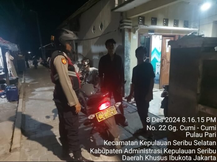 ACTUALNEWS.ID, Jakarta – Polsek Kepulauan Seribu Selatan, Polres Kepulauan Seribu, melaksanakan Kegiatan Patroli Malam Perintis Presisi, Dialogis, dan Sambang, Senin (09/12/2024). Kegiatan ini dilakukan dalam rangka mengantisipasi gangguan Kamtibmas, khususnya mencegah tawuran remaja di wilayah hukum Polsek Kepulauan Seribu Selatan.