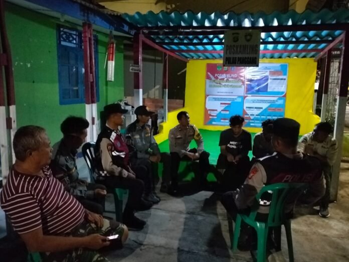 Jajaran Bhabinkamtibmas Polsek Kepulauan Seribu Selatan bersama unsur tiga pilar melakukan patroli dan pengecekan kesiapan petugas pos kamling dalam menjalankan tugas menjaga keamanan lingkungan. Petugas juga memberikan arahan agar seluruh anggota poskamling tetap waspada, rutin melakukan patroli malam, dan segera melaporkan setiap potensi gangguan Kamtibmas kepada pihak kepolisian.