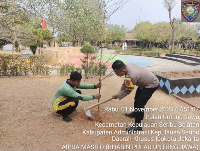 ACTUALNEWS.ID, Jakarta – Polsek Kepulauan Seribu Selatan dari Polres Kepulauan Seribu bekerja sama dengan warga setempat gencar melakukan penanaman puluhan bibit pohon di setiap pulau penduduk. Langkah ini diambil sebagai upaya konkret dalam mengatasi masalah polusi udara yang semakin meresahkan masyarakat, Rabu (01/11/2023).