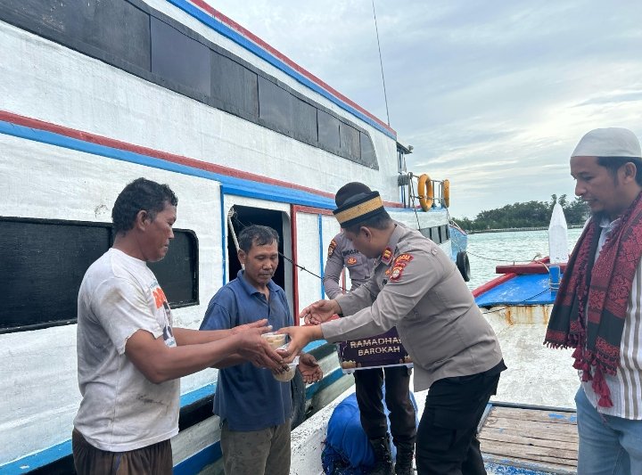 Kapolsek Kepulauan Seribu Utara, Iptu Yoyo Hidayat, S.H., bersama anggota turun langsung membagikan takjil kepada para nelayan yang sedang beraktivitas di sekitar pesisir. Selain berbagi berkah, kegiatan ini juga menjadi momen untuk mempererat silaturahmi antara kepolisian dan masyarakat.