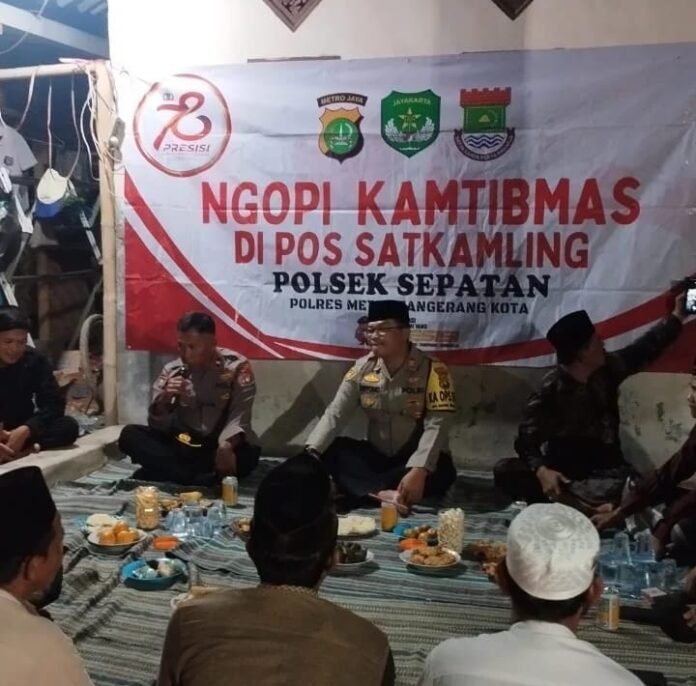 ACTUALNEWS.ID, Jakarta – Dalam rangka mempererat hubungan antara Polri dan masyarakat, Polsek Sepatan Polres Metro Tangerang Kota menggelar kegiatan “Ngopi Kamtibmas” pada Rabu 23 Oktober 2024 di Kp. Gurudug RW. 03 Ds. Mekar Jaya Kec. Sepatan yang dipimpin oleh Kapolsek Sepatan AKP Sriyono, S.H., M.H., Kanit Binmas Polsek Sepatan Ipda Hartoyo dan Bhabinkamtibmas Ds. Mekar Jaya Bripka David. Kegiatan ini merupakan salah satu upaya Polri untuk menciptakan komunikasi yang lebih intens dan terbuka dengan warga, guna mendengarkan langsung aspirasi, keluhan, serta masukan terkait situasi keamanan dan ketertiban masyarakat (Kamtibmas).