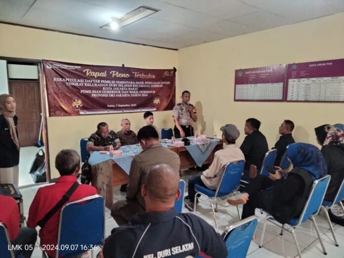 ACTUALNEWS.id, Jakarta Barat – Panitia Pemungutan Suara (PPS) Kelurahan Duri Selatan Kecamatan Tambora Kota Administrasi Jakarta Barat, Sabtu (7/9/2024) mengadakan rakor Daftar Pemilih Sementara Hasil Pemuktahiran (DPSHP) pada pemilihan Gubernur dan Wakil Gubernur Jakarta 2024 tingkat Kelurahan Duri Selatan di aula lantai 1.