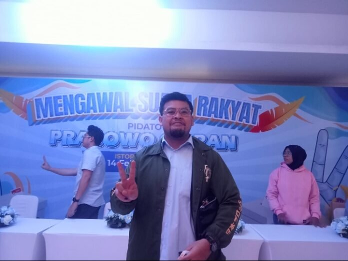 Relawan Prabowo Gibran merespon dengan antusias dan penuh semangat pidato kemenangan Prabowo Gibran
