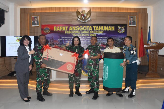 ACTUALNEWS.ID TNI AL, Bandung, 27 Februari 2023,– Primkopal (Primer Koperasi Angkatan Laut) Lanal Bandung menggelar RAT (Rapat Anggota Tahunan) Tahun Buku 2022, dengan Tema “Melalui Pemberdayaan Koperasi Angkatan Laut Kita Wujudkan Program Ketahanan Pangan Nasional Guna Meningkatkan Kesejahteraan Anggota Koperasi Beserta Keluarganya”, bertempat di Aula Mako Lanal Bandung, Jalan Aria Jipang No. 8, Kota Bandung, Senin (27/02/2023).