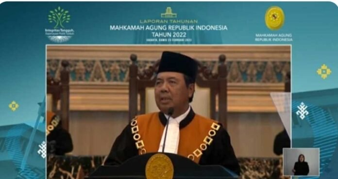 Pada kesempatan ini, Ketua Mahkamah Agung menyampaikan proses penanganan perkara selama 2022, capaian- capaian Mahkamah Agung dan badan peradilan di bawahnya, dan lain-lain.
