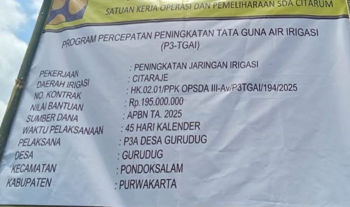 ACTUALNEWS.ID, Purwakarta | Actualnews.id – Demi menopang perekonomian masyarakat, pemerintah kembali menggulirkan Program Percepatan Peningkatan Tata Guna Air Irigasi (P3-TGAI) tahun anggaran 2025. Program ini disambut gembira oleh warga karena dinilai sangat dibutuhkan dalam peningkatan sarana irigasi.