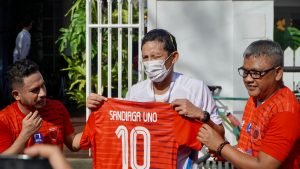 Pada kesepatan tersebut, Sandiaga Uno juga mendapatkan kostum atau Jersey Maluku FC bertuliskan namanya dan beromor punggung 10 yang diserahkan Presiden Maluku FC Ikhsan Tualeka, didampingi CEO Maluku FC Irwan Maulana.