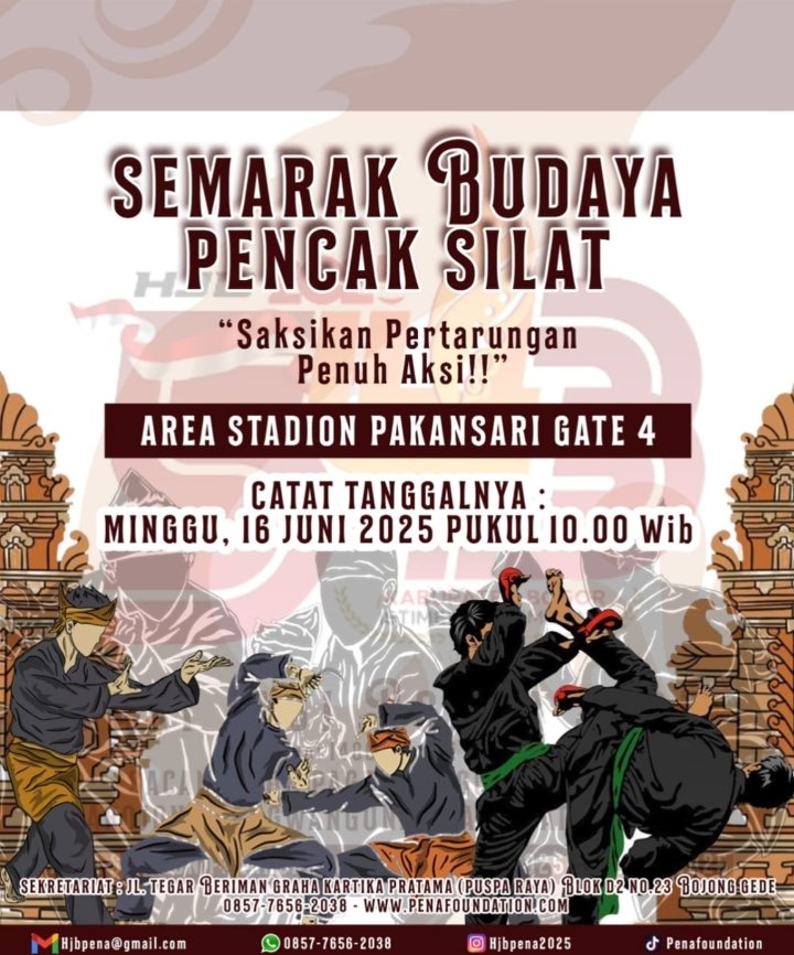 “Saya juga berharap dengan tampilnya atraksi silat dalam HJB ke 543 ini akan semakin membuka wawasan warga Bogor umumnya, bahwa silat ini membawa dan mengandung filosofi yang dalam tentang kehidupan dan kearifan lokal,” tutupnya.