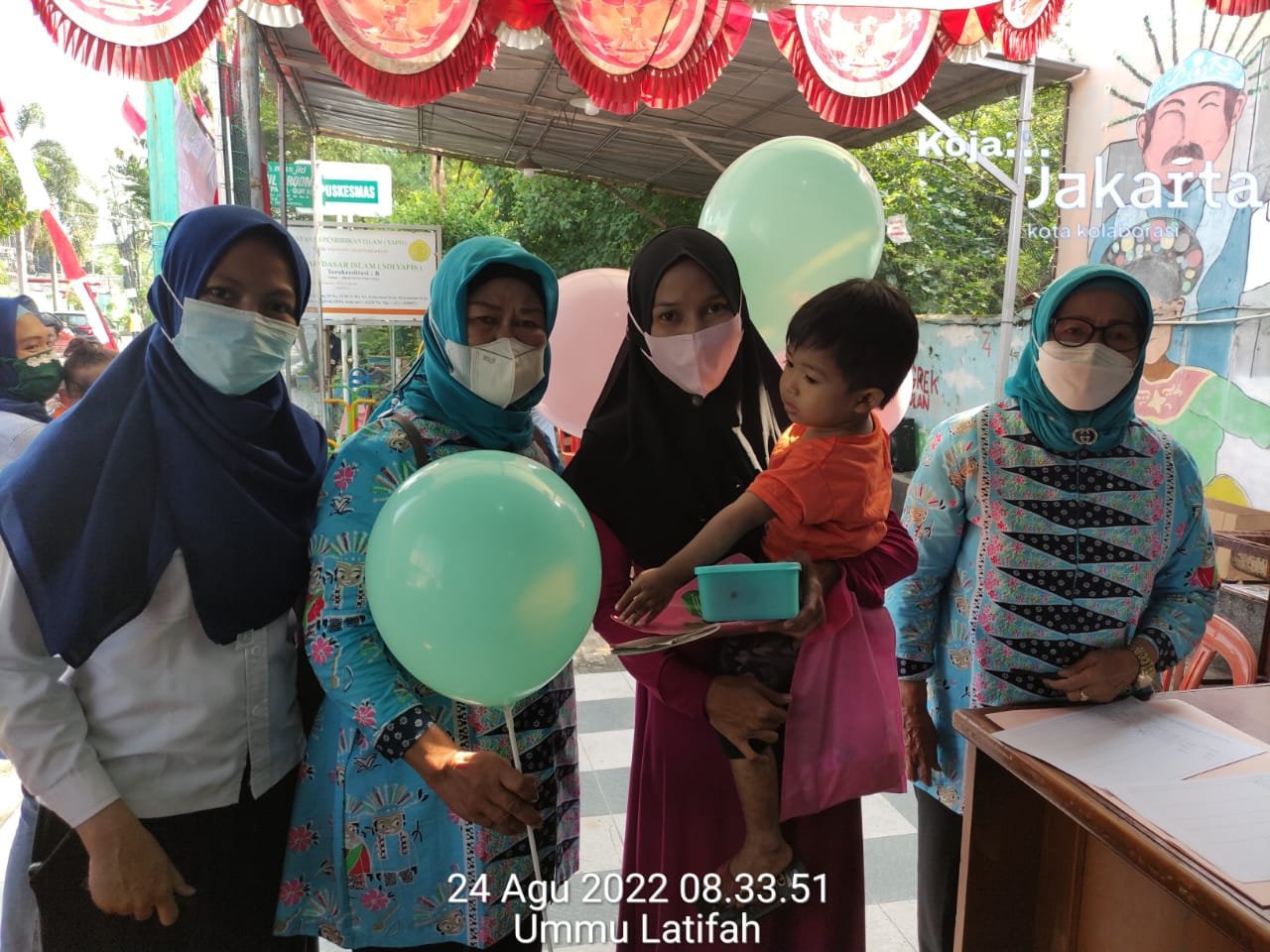 -Pemberian balon/susu/permen kepada bayi dan balita yang sudah diimunisasi oleh PKK kelurahan Koja