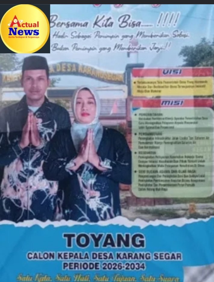 ACTUALNEWS.id Bekasi- Toyang, putra daerah asli Desa Karangsegar, Kecamatan Pebayuran, Kabupaten Bekasi, menyatakan siap mencalonkan diri dalam pemilihan kepala desa (Pilkades) Desa Karangsegar tahun 2026.7 April 2026