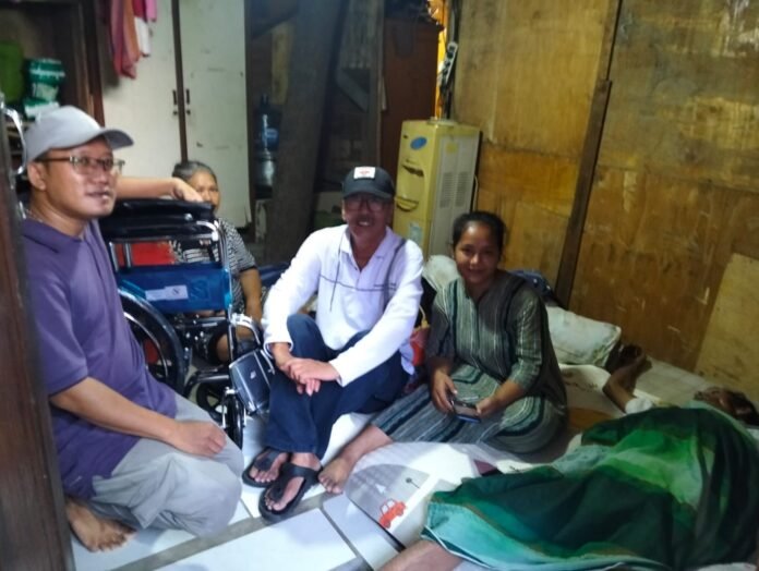 Pemberian kursi roda di serahkan langsung oleh ketua harian PWP Hermawan kepada warga bernama Bapak Marjaya (52) yang mengalami sakit stroke yang di saksikan oleh anak dari bapak Marjaya.
