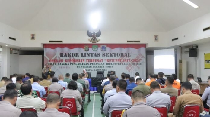 ACTUALNEWS ID, Jakarta – Polres Metro Jakarta Timur bersama Forkopimko menggelar Rapat Koordinasi Lintas Sektoral Ops Terpusat Ketupat Jaya 2024 dalam rangka pengamanan Hari Raya Idul Fitri 1445 H, di Aula LT 6 Restro Jaktim Mapolres, Selasa (2/4/2024) siang.