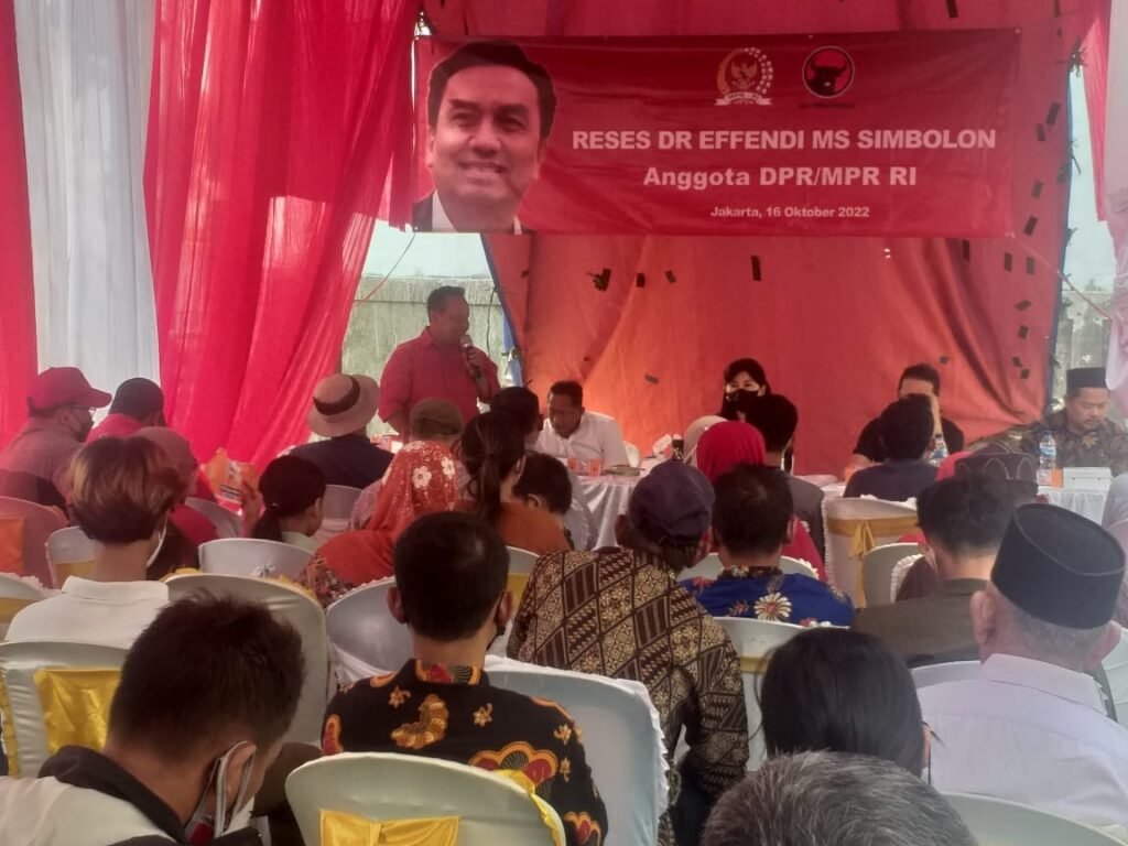 ACTUALNEWS.ID, Jakarta ,- Sebagai anggota legislatif dari fraksi PDI Perjuangan, DR Effendi MS Simbolon kembali mengadakan reses didapilnya. Kali ini reses dilaksanakan di kantor sekertariat DPC PDI Perjuangan Kota Jakarta Barat, jalan semanan raya kelurahan semanan, kec kalideres, jakarta barat, Minggu (16/10/2022).