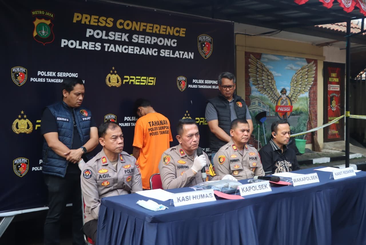 Hal tersebut disampaikan Kapolsek Serpong Kompol Suhardono, S.H., M.M. dalam konferensi pers di Mapolsek Serpong, Rabu (24/9) siang. Turut hadir Kasi Humas Polres Tangsel AKP Agil Sahril, Wakapolsek Serpong AKP Purwanto, dan Kanit Reskrim AKP Joko Aprianto.