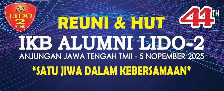 ACTUALNEWS.ID Jakarta – Keluarga Besar Alumni Lido-2 dengan sukacita mempersembahkan Reuni dan Perayaan Hari Ulang Tahun ke-44 yang diadakan pada 5 November 2025 di Anjungan Jawa Tengah, Taman Mini Indonesia Indah, Jakarta Timur.