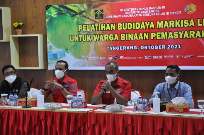ACTUALNEWS.ID, Tangerang – Dalam rangka memenuhi hak Warga Binaan Pemasyarakatan (WBP), Rutan Kelas I Tangerang dan Lapas Terbuka Kelas IIB Ciangir bekerjasama dengan Kementerian Pertanian memberi pembekalan pembinaan kemandirian keterampilan bidang pertanian berupa pelatihan budidaya Markisa Liar, Sabtu 23 Oktober 2021.