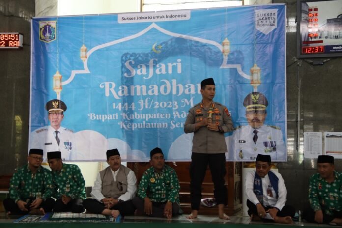 ACTUALNEWS.ID, Jakarta – Kapolres Kepulauan Seribu AKBP Ary Sudradjat, S.H., S.I.K., M.Si. menghadiri kegiatan Safari Ramadhan di Masjid Al Makmuriyah Pulau Pramuka Kelurahan Pulau Panggang Kecamatan Kepulauan Seribu Utara. Kamis (13/04/2023).