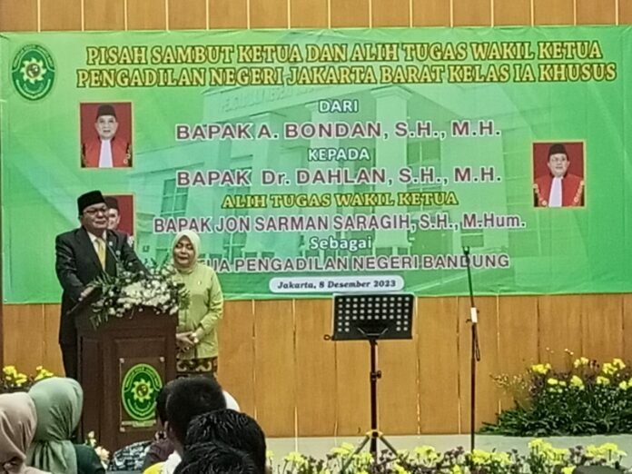 ACTUALNEWS.ID, Jakarta – Pengadilan Negeri (PN) Jakarta Barat menggelar Pisah Sambut Ketua dan Alih Tugas Wakil Ketua kelas IA Khusus dari Bpk. A. Bondan, S.H., M.H. kepada Bapak. Dr. Dahlan, S.H., M.H. serta Alih Tugas Wakil Ketua Bpk. Jon Sarman Saragih, S.H., M.Hum. sebagai Ketua PN Bandung, acara pisah sambut digelar di Aula PN Jakbar, Jl. Letjen S. Parman No.71, RT.10/RW.3, Slipi, Kecamatan. Palmerah, Jakarta Barat, Jumat (08/12/2023) siang.
