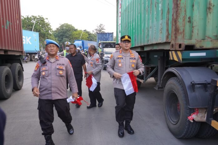 ACTUALNEWS.ID, Jakarta Utara – Menjelang peringatan HUT ke-80 Republik Indonesia, suasana kebangsaan mulai terasa di tengah masyarakat. Salah satu wujud nyatanya tampak di kawasan depan Pos 1 Pelabuhan Tanjung Priok, Jakarta Utara, Selasa (5/8/2025) sore, saat jajaran Polres Metro Jakarta Utara membagikan 100 Bendera Merah Putih kepada para pengemudi kendaraan.