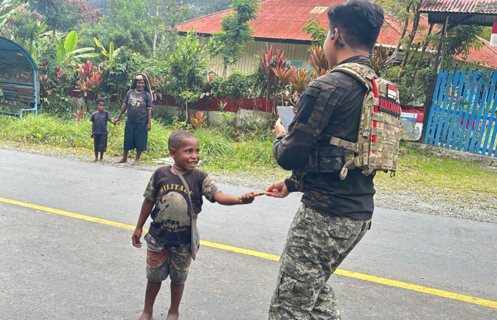 Kasatgas Humas Operasi Damai Cartenz, Kombes Pol. Yusuf Sutejo, S.I.K., M.T., mengimbau agar momentum kedekatan dengan anak-anak dan warga terus dijaga.