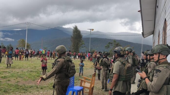 ACTUALNEWS.ID, Intan Jaya — Suasana hangat dan penuh kebersamaan terlihat dalam pelaksanaan tradisi bakar batu di Gereja Antiokhia, Distrik Sugapa, Kabupaten Intan Jaya, Senin (6/4/2026). Di tengah prosesi adat tersebut, personel Satgas Operasi Damai Cartenz 2026 hadir tidak hanya untuk melakukan pengamanan, tetapi juga berbaur bersama masyarakat.
