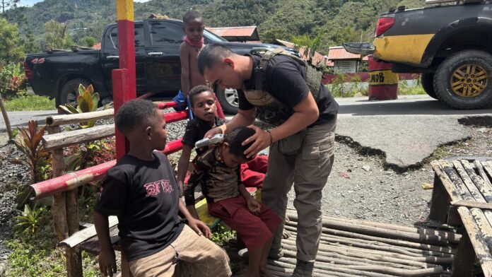 ACTUALNEWS.ID, Puncak Jaya – Personel Satuan Tugas (Satgas) Tindak Operasi Damai Cartenz 2025 menggelar kegiatan sosial berupa layanan cukur rambut gratis bagi anak-anak di Distrik Mulia, Kabupaten Puncak Jaya, Papua Pegunungan, pada Rabu (23/4/2025).