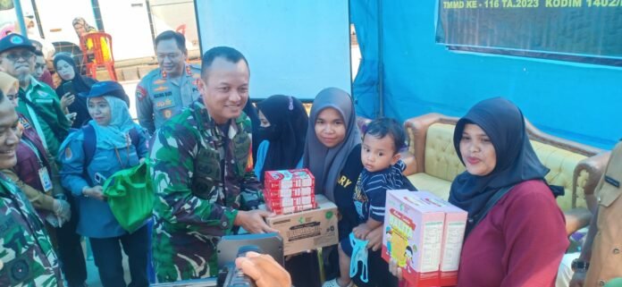 ACTUALNEWS.ID, Polewali Mandar,- Bakti sosial pelayanan kesehatan umum di lokasi TMMD Ke-116 Kodim 1402/Polman Di Desa Ongko, Kecamatan Campalagian, Kabupaten Polewali Mandar, Selasa (23/5/2023).