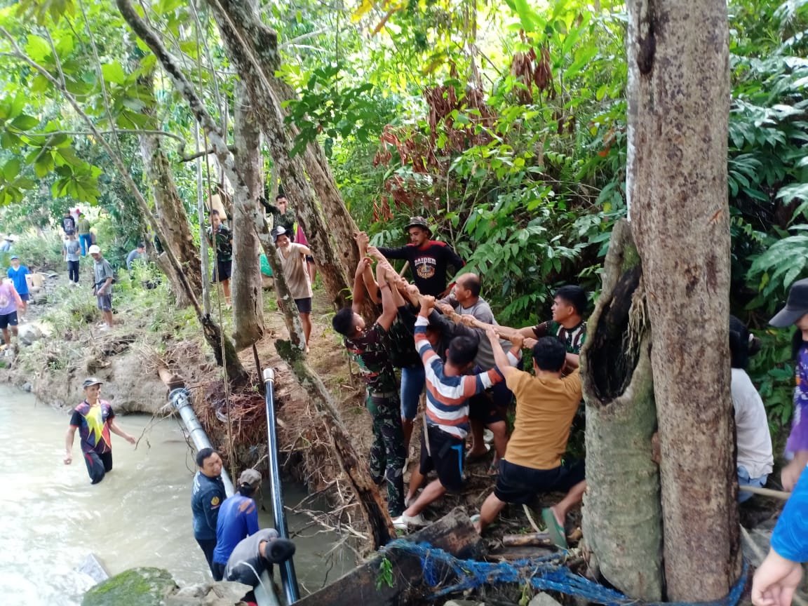 “Bendungan air ini digunakan warga untuk mengalirkan air bersih ke rumah rumah warga dalam rangka memenuhi kebutuhan air sehari-hari, maka kami berinisiatif mengajak seluruh masyarakat sekitar untuk bergotong royong memperbaiki bendungan air tersebut,” kata Dansatgas.