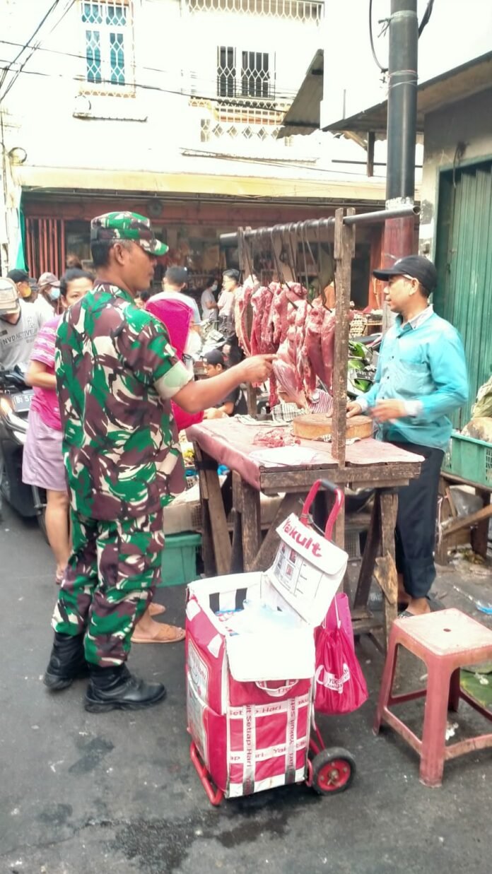 ACTUALNEWS.ID Kodam jaya Jakarta – Cek kestabilan harga bahan pokok di pasar tradisional, Babinsa Koramil 02/TB Kel.Duri utara Sertu Mulyana melaksanakan pendataan harga kebutuhan bahan bahan pokok di Pasar Garuda Jl.Duri Utara II RT.12/02, Kel. Duri Utara, Kec.Tambora Jakarta Barat.Selasa (25/7/2023)