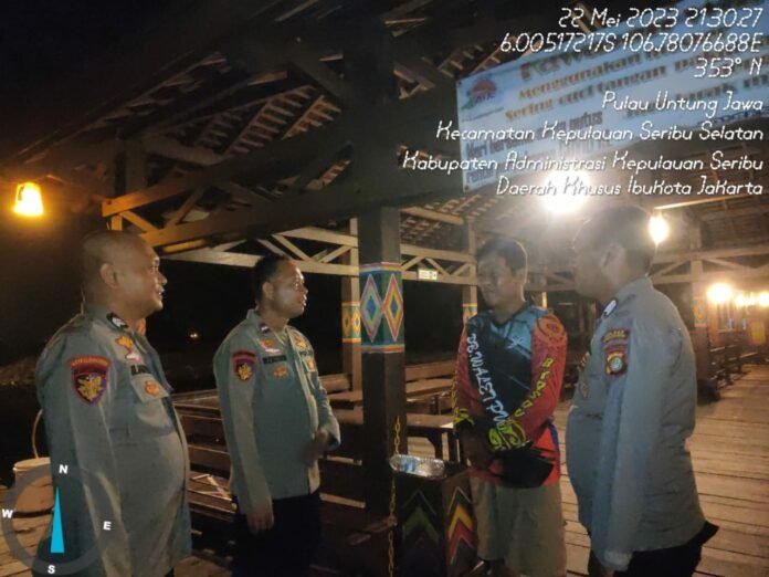 ACTUALNEWS.ID, Jakarta – Satuan Polair Polres Kepulauan Seribu terus menjaga keamanan perairan di wilayah Kepulauan Seribu dengan melakukan patroli perairan secara intensif, khususnya pada malam hari. Pada Senin (22/05/2023), tim Polair Polres Kepulauan Seribu melaksanakan patroli dan melakukan sambang ke para nelayan di Pulau Untung Jawa untuk memberikan himbauan keselamatan berlayar.