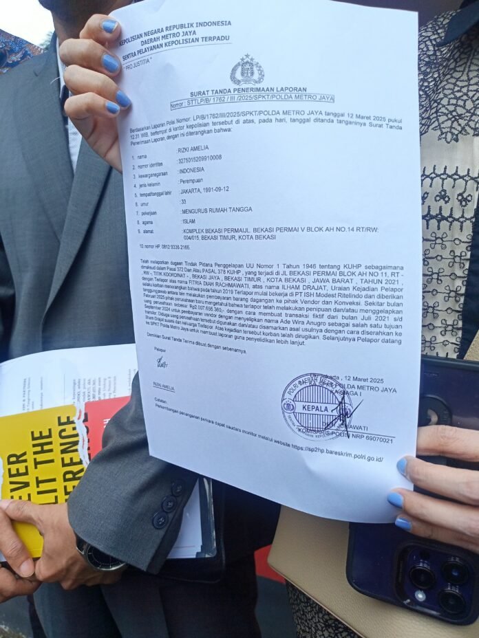 ACTUALNEWS.ID, Jakarta, Rizki Amelia atau yang biasa dikenal Iymel selebgram bersama kuasa hukumnya, Patra M. Zen, mendatangi Polda Metro Jaya untuk melaporkan dugaan penipuan yang dilakukan oleh mantan Manajer Iymel yaitu FD. Laporan tersebut tercatat dalam Laporan Polisi Nomor: LP/B/1762/II/2025/SPKT/POLDA METRO JAYA pada 12 Maret 2025.