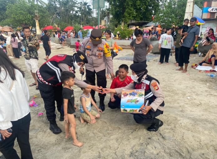 “Hari ini, kami kembali melakukan kegiatan humanis. Membagikan mobil mainan ke pengunjung anak laki-laki di Ancol,” kata Kapolsek Pademangan Kompol Binsar H. Sianturi.