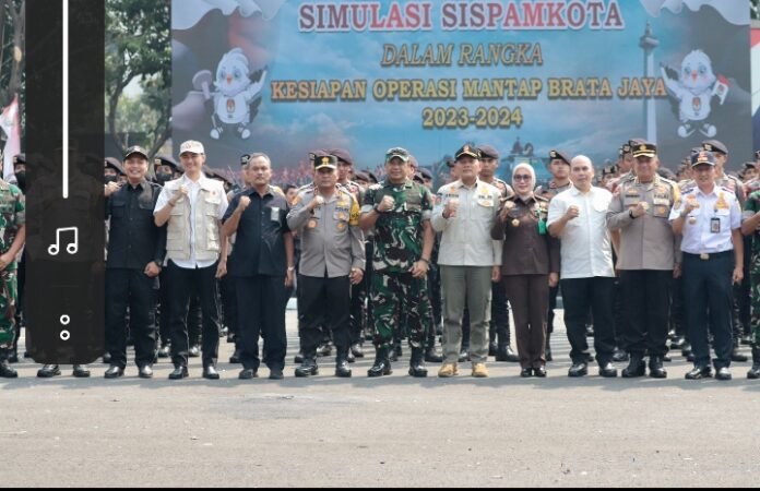 Kapolda Metro Jaya Irjen Pol. Karyoto Mengatakan Simulasi Sistem pengamanan kota (Sispamkota) sebagai wujud kesiapan untuk mengantisipasi gangguan keamanan dan ketertiban masyarakat selama rangkaian Pemilu 2024 dengan melibatkan Personil TNI/Polri dan Satpol PP.