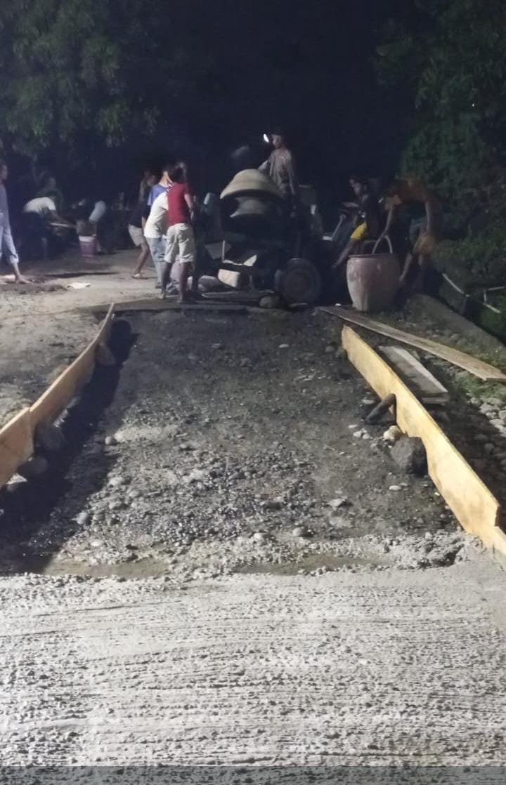 Proses pengecoran dilakukan secara bertahap dengan melibatkan berbagai kalangan, mulai dari pemuda hingga orang tua. Suasana kebersamaan tampak begitu kental, mencerminkan nilai gotong royong yang masih terjaga di tengah masyarakat.