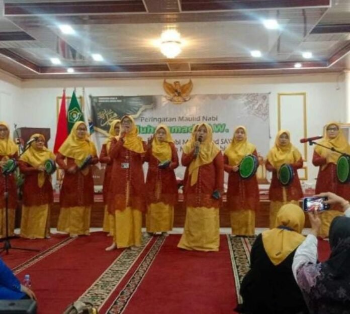 ACTUALNEWS.ID, Jakarta— Grup Qosidah Al-Mufrodat tampil dalam acara Peringatan Maulid Nabi Muhammad SAW, Selasa (17/10) di Kantor Kemenag Kota Jakarta Pusat.
