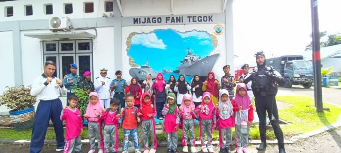 ACTUALNEWS.ID TNI AL, Simeulue,- Pangkalan TNI AL Simeulue menerima kunjungan 18 orang Siswa-Siswi dan 6 Guru Pendamping Taman Kanak (TK) Negeri Rasa Sayang, Desa Kolok, Kecamatan Simeulue Timur di Mako Lanal Simeulue dan KAL Sinabang, Rabu (23/02/2023).