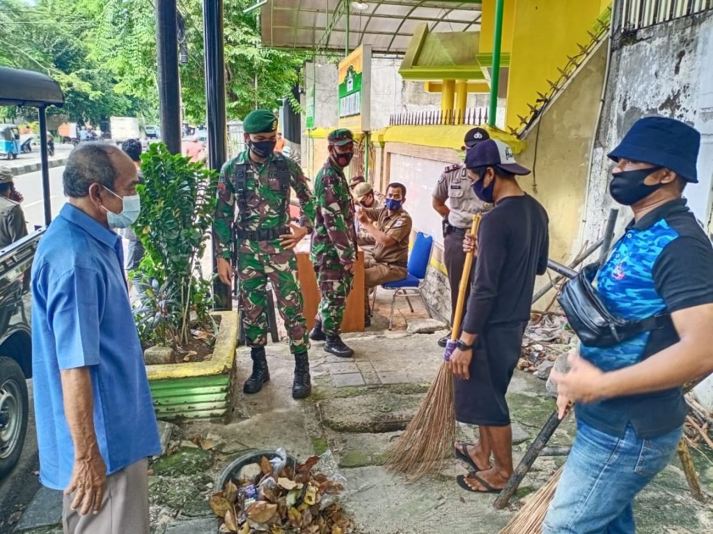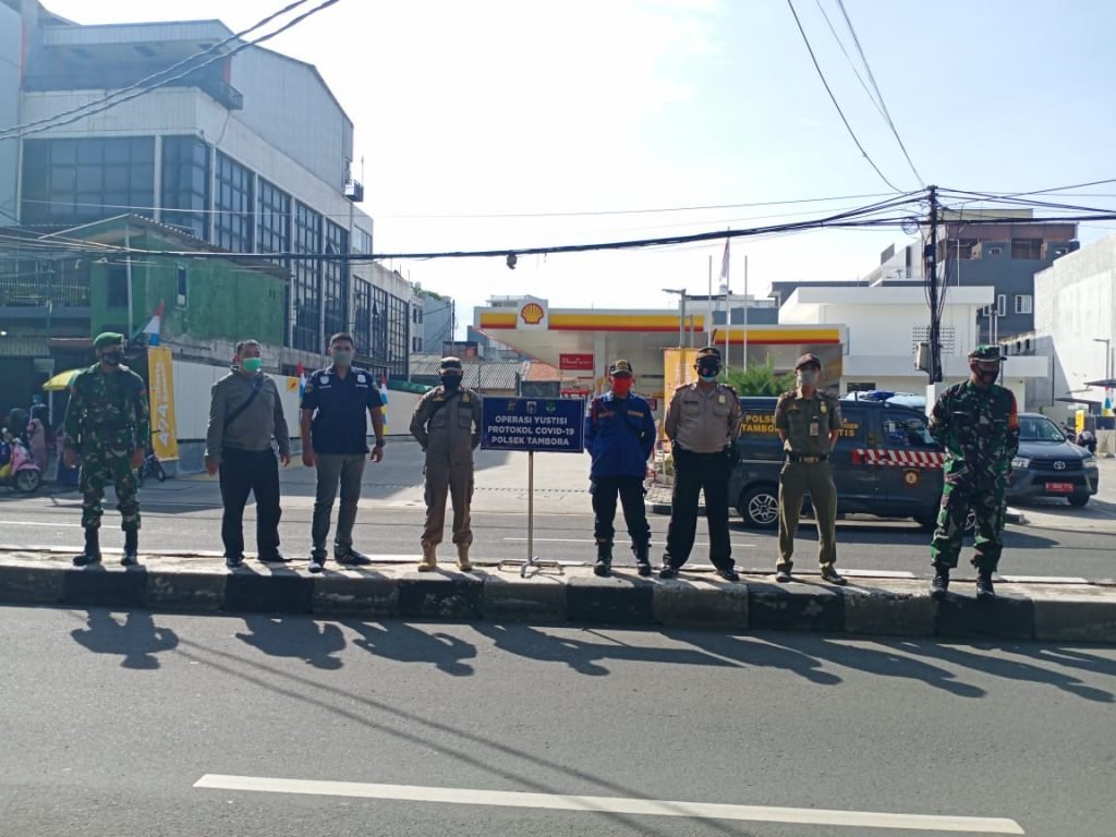 Operasi yustisi di gelar di Jl. KH Mas Mansyur Rw 01, Kelurahan Duri Selatan, Kecamatan Tambora Jakarta Barat dengan memurunkan 25 personil gabungan dari Koramil 02/TB Sertu Sarip H, Polsek Tambora, Satpol PP, Damkar dan PPSU, Senin (21/6) pagi.
