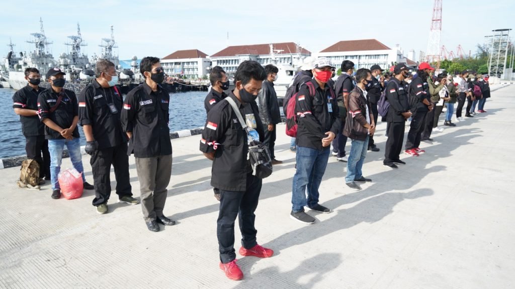 “Kami berupaya semaksimalnya untuk memberikan do’a dan penghormatan tertinggi kepada para patriot bangsa yang gugur bersama tenggelamnya KRI Nanggala 402 di perairan utara Bali. Disini kami mengajak rekan-rekan jurnalis bersama Lantamal 3 TNI AL sebagai bentuk penghormatan terakhir kepada 53 personil KRI 402. “Ucap Ketua Korwil FWJ Jakarta Utara, Djuli Asnawi yang juga sebagai Panitia Tabur Bunga di Darmaga Lantamal 3, Jakarta Utara, Selasa (4/5/2021) sore.