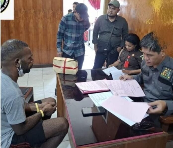 ACTUALNEWS.ID, Nabire — Tersangka kasus pembunuhan anggota Satgas Mandala IV di Kali Mawar, Distrik Ilu, Kabupaten puncak jaya, Kamenak Gire alias Tandangan Kogoya alias Kamenak Kogoya, resmi diserahkan ke Kejaksaan Negeri Nabire dalam tahap II pada Rabu (19/3).