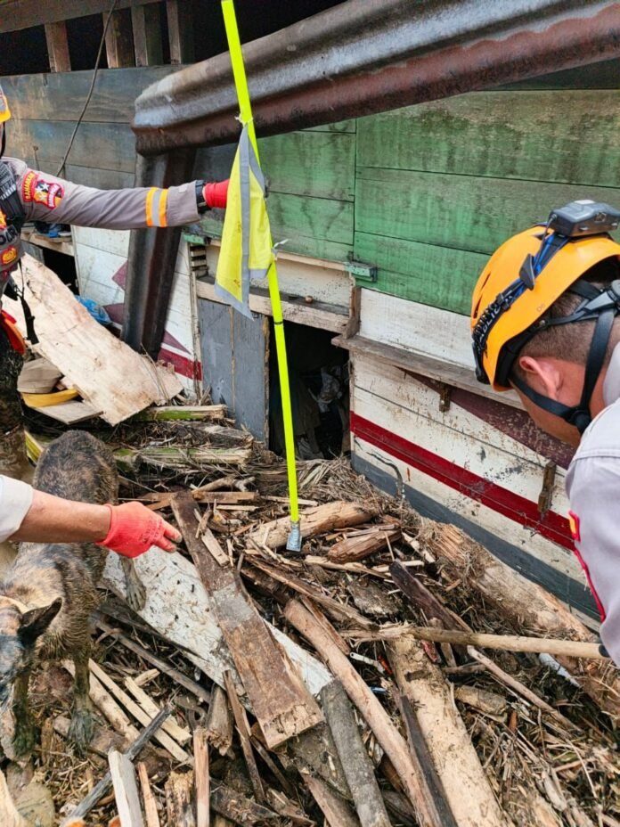 “Tim K9 bergerak cepat setelah mendapat laporan warga. Anjing pelacak berhasil mengarahkan tim ke titik bau dan ditemukan satu korban perempuan. Saat ini proses identifikasi masih berlangsung dan Polri berkoordinasi dengan instansi terkait,” ujarnya.