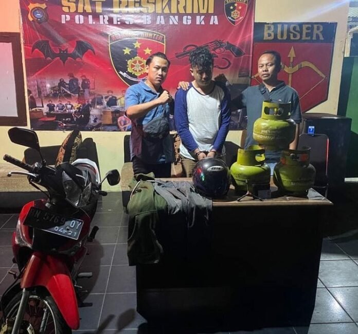 “Redo merupakan pelaku tindak pidana penipuan Dengan, Modus transfer uang topup game senilai Rp 3 juta Tak hanya, itu saja Redo juga diketahui Merupakan pelaku tunggal, pencurian di Kafe Kangen Kecamatan Sungaliat, Pemilik kafe Mengalami, kerugian uang Rp 650.000. yang ada dalam laci Meja kafe dan (3) tabung gas, (3) kg”,Jelasnya,