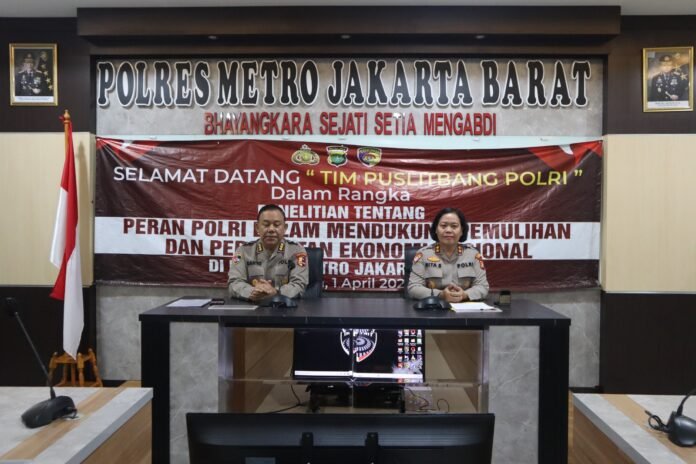 ACTUALNEWS.ID, Jakarta Barat – Tim Pusat Penelitian dan Pengembangan (Puslitbang) Polri melakukan kunjungan ke Polres Metro Jakarta Barat untuk melakukan penelitian tentang peran Polri dalam mendukung pemulihan dan percepatan ekonomi nasional.