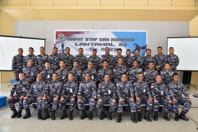 “Rapat Staf dan Komando Lantamal XII merupakan kelanjutan dari Rapim TNI, Rapim TNI AL dan Rasko Koarmada I yang telah dilaksanakan beberapa hari yang lalu guna menindaklanjuti kebijakan Pimpinan TNI Tahun 2023,” kata Danlantamal XII.