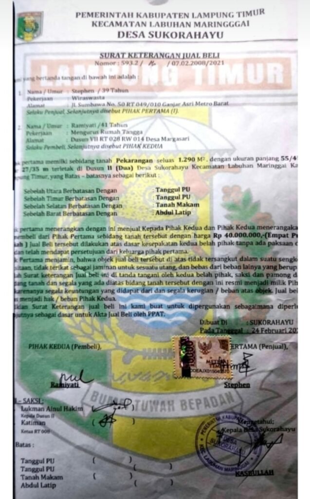 ACTUALNEWS.ID Jakarta – Ada saja tindakan oknum kepala desa yang menghambat proses proyek perluasan Kampung Nelayan Merah Putih (KNMP). Penghambatan proses proyek strategis nasional Kementrian Kelautan dan Perikanan (KKP) yang juga sejalan dengan Asta Cita Presiden Prabowo Subianto itu dilakukan olah oknum Ady Kepala Desa Sukorahayu, Kecamatan Labuhan Maringgai Lampung Timur, Lampung