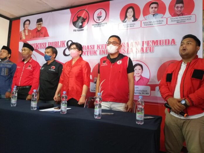 Berthema “Harmonisasi Semangat Kepemudaan Pemuda Bersatu Idonesia Maju & Tanfangan Arah Pemuda Menuju Tahun Politik 2024,” acara diskusi dihadiri sekaligus pembicara diantaranya,Krisna Murti. SH, MH sebagai Keynote Speakrs, Surya Muhammad Nur. Msi dari Dosen Komunikasi Universitas Esa Unggul, CN.DR, Lauw Siegvrieda.SH,MH, Ketua DPC (Dewan Pimpinan Cabang PDI Perjuangan Kota Jakarta Barat, Brando Susanto, Ketua DPD TPM DKI Jakarta, Fransiskus Simbolon, Ketua TMP kota Jakarta Barat dan Ketua PAC PDI Perjuangan Kebon Jeruk Wardima beserta ratusan kader dan simpatisan PDI Perjuangan.
