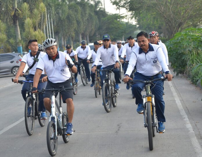 ACTUALNEWS.IDTNI AL, Dumai,- Dalam rangka menjalin kebersamaan, Pangkalan TNI Angkatan Laut Dumai gelar sepeda santai (Gowes) bersama yang dipimpin langsung oleh Komandan Lanal Dumai Kolonel Laut (P) Stanley Lekahena, M.Tr. Hanla., diidampingi Ibu Ketua Cabang 4 Korcap I DJA I Ny. Sandra Stanley yang diikuti oleh Prajurit dan PNS Lanal Dumai, Rabu (08/02/2023).