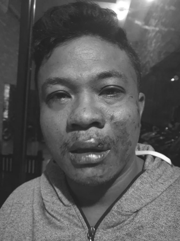 Abun yang dalam pengaruh minuman keras memaki nurman dengan kata kata kotor dan langsung mencengkram wajah nurman tanpa alasan yang jelas. Setelah memaki dan mencengkram wajah nurman, Abun selanjutnya menghujani nurman dengan pukulan dibagian wajahnya hingga mengalami luka memar dan robek pada bibir bagian atas.